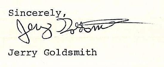 Our thanks go to Steve Vertlieb for the first set of items. Steve wrote a letter of appreciation to Jerry Goldsmith in 1980 and received the following response.