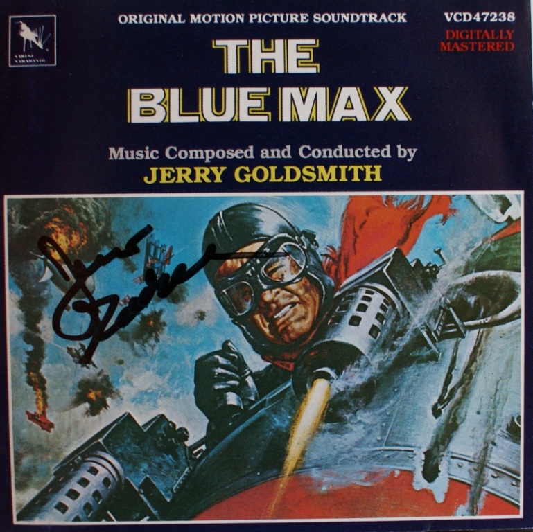 • The Blue Max - this is a truly symphonic score by Goldsmith with exciting aerial combat scenes accompanied by a wind machine, and the underlying mood of obsession for the medal of honour; the latest soundtrack album has music recorded but unused in the final film