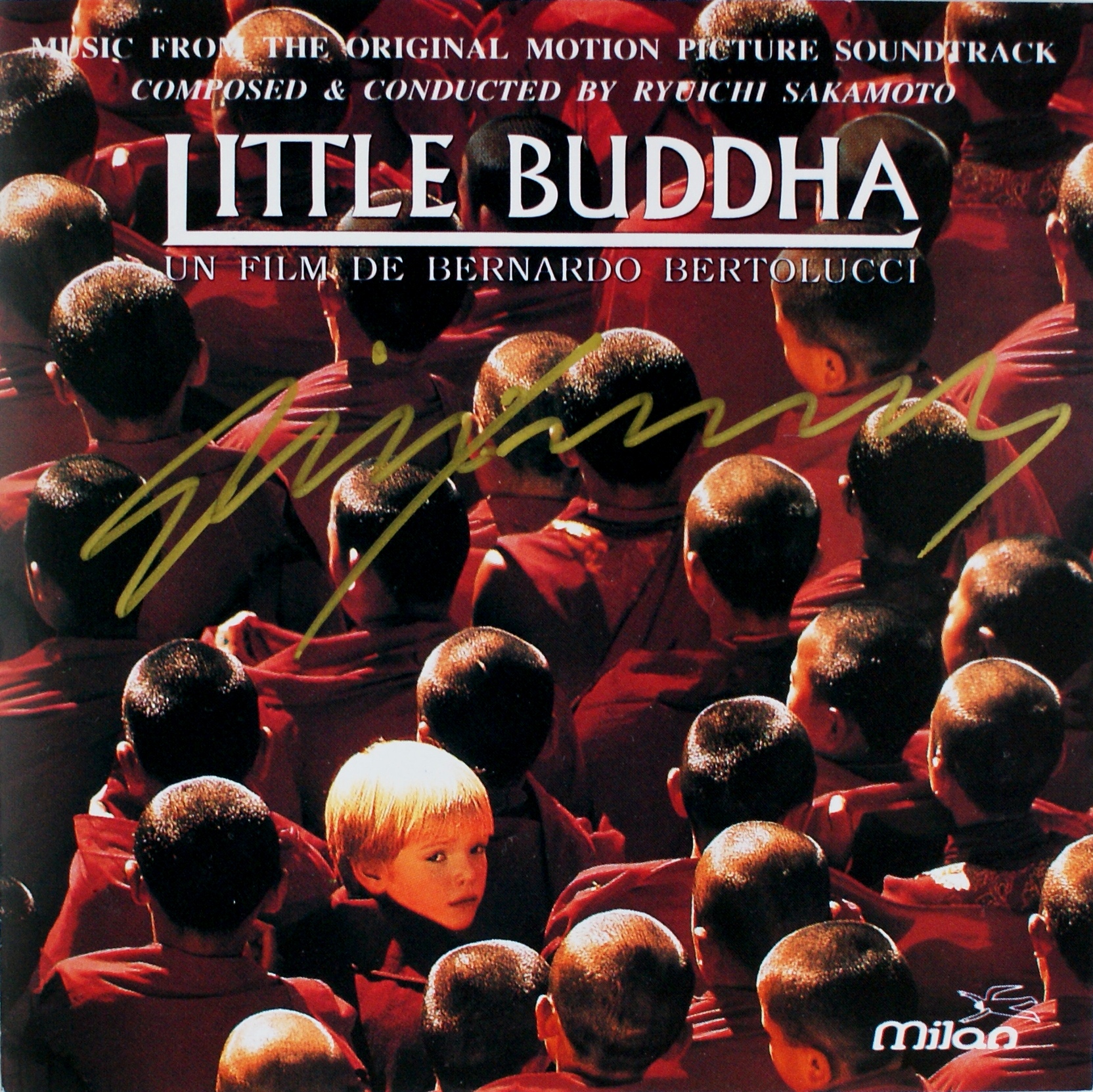 Ryuichi Sakamoto - Little Buddha soundtrack CD cover Nagisa Oshima's Merry Christmas for Mr. Lawrence was really the composers breakthrough as an international artist though. The parallel with Joe Hisaishi (especially with the scores to Hana-Bi and Princess Mononoke), mentioned in the first paragraph, becomes obvious with Sakamoto's main theme for the film, in which a minimal tune is played while the orchestra washes in and out softly in the background. Such was the score's success, that its main theme became synonymous with Zen tranquility, featured in documentaries, TV spots and countless other media throughout subsequent years. With this in mind, Little Buddha (1993) was a logical continuation for Sakamoto due to its themes, providing yet another great opportunity for the composer's trademark sound to mature.