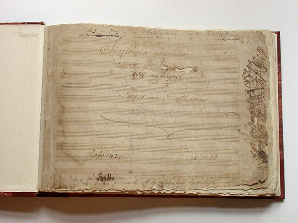 Beethoven went to the table on which his manuscript lay, and crossed out the "Bonaparte" dedication -- with such force that it actually tore a hole in the paper. There's no-one left alive now who knew Beethoven (the last one who did, Dr. Gerhard von Breuning, died in 1892) -- but the hole the composer made on that manuscript title-page is still there. When the symphony was published in October, 1806, its dedication was not to Napoleon, but bore instead the following inscription: "Sinfonia Eroica -- composed to celebrate the memory of a great man."