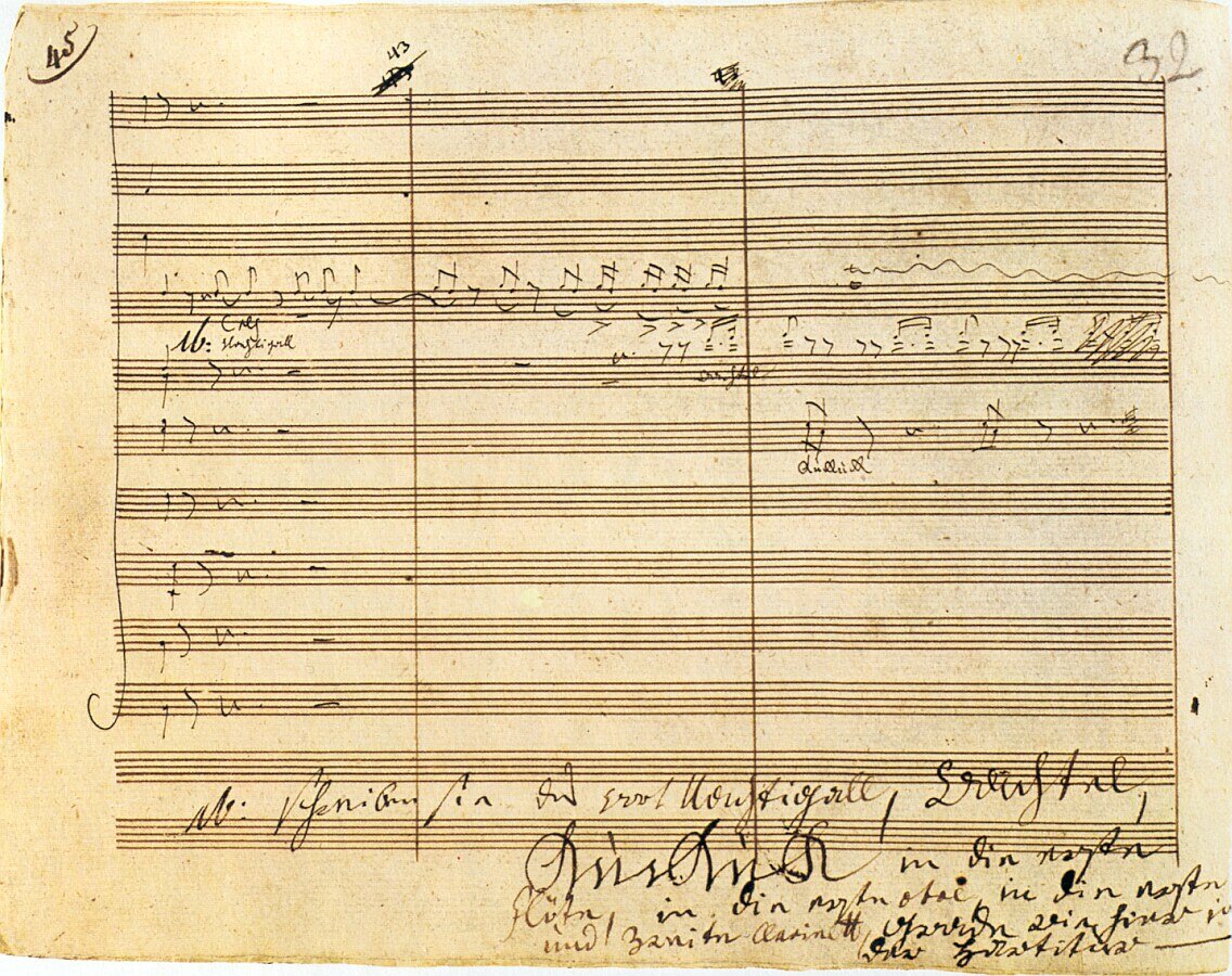 The case of Beethoven proves there need be no connection between the poverty of a composer's handwriting and the riches in his music. His copyist Ferdinand Wollanek eventually went blind, though any correlation between that misfortune and Beethoven's unfortunate handwriting should of course be conjectural. A feat performed by Beethoven's friend Marie Bigót de Morogues in 1814 seems a testimony to her abilities as a pianist: she played the composer's Appassionata sonata from the manuscript itself. Those who have seen it will know what this means. It bears water stains still today from having been transported by Beethoven, even inside a traveling trunk, in a teeming downpour. A facsimile of the manuscript was published by Edition Peters, Leipzig.